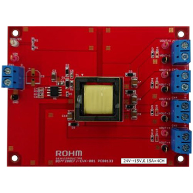 搭载BD7Fxxx系列的评估板可从网络代售点购买。能轻松评估各种电压电流的隔离电源。